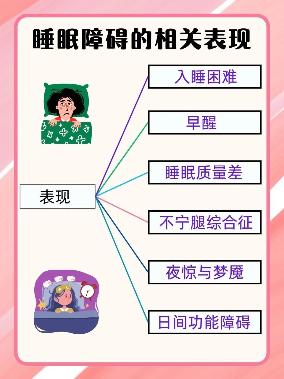 睡眠质量差:睡眠浅,多梦,感觉睡眠不解乏,醒来后仍有疲倦感。