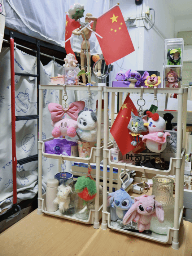 小小的寝室住着小小的我们, 小小的置物架抱着小小的物什。 我们不堆砌垃圾,生活整理喜爱。将你我的鞋放在一起,你的沐浴露挨着我的洗发水,看书本上缘勾勒出的波浪线,缀上点心爱的元素,再搭配木头的底色,就好像故事里陈旧却温暖的小房间,铺开我们的起居生活。 当我们在学校,寝室成了我们栖息的地方,我们每天刷牙洗脸,对着镜子打理头发,坐在桌前或学习或放松,收纳似乎不止让寝室干净了一些,还为其加上了一丝温度,一些对生活的积极态度,我们永远可以从瓶瓶罐罐的空隙间看见幸福。