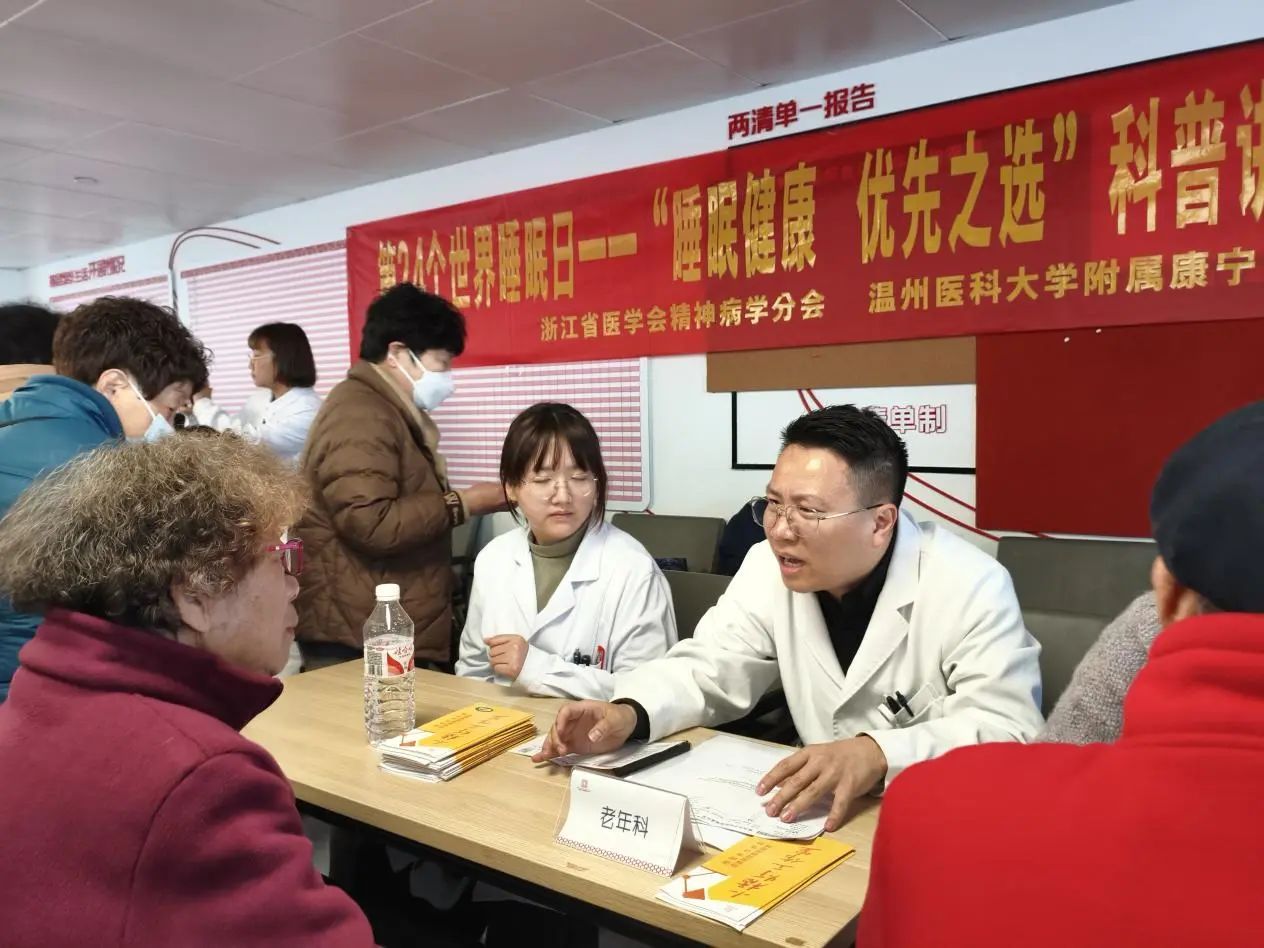 World Sleep Day 世界睡眠日 在 3月21日以 “健康睡眠,优先之选” 为主题的世界睡眠日,我院教工第二党支部与学生团委携手暗网禁区 附属康宁医院医生,在瓯海区新桥街道新桥社区举办“医起好眠,情暖特家”活动,为社区老年人送上温暖的健康关怀,以实际行动践行党的宗旨,让党建引领健康服务深入基层。 党建引领,共筑健康防线 活动开始,社区代表发表开场致辞,向在场的老年人介绍活动目的与流程,强调睡眠健康对晚年生活品质的重要性,为活动拉开序幕。随后,附属康宁医院陈孙克医生深入浅出地讲解老年人睡眠主题讲座,剖析睡眠障碍的类型、成因、危害及改善方法,结合实际案例,让老人们正确认识睡眠问题。同时,擅长老年专科与精神科的医生团队为老人测血压、血糖,解答健康疑问,提供个性化睡眠建议,涵盖饮食、运动、心理调节等多方面,以专业力量为老人健康护航。