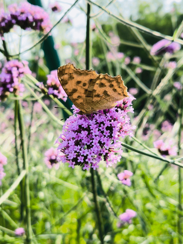 李泊翰 去年晚春,一个温暖而慵懒的午后,在大学城周边漫无目的地走。偶遇一片绿化带,停在柳叶马鞭草上的暮眼蝶和我一样悠闲。所有生命都在享受着春天。
