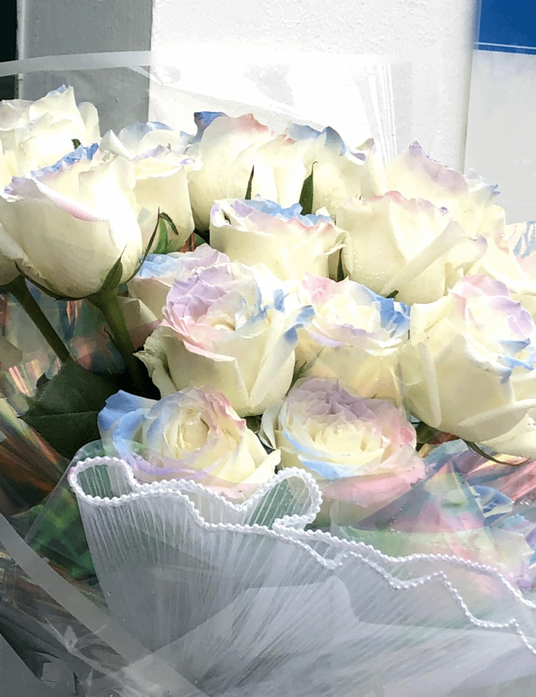 何佳洁 照片拍摄于2023.6.7是上高中之后第一次回初中看老师带的花。花是染了颜色的,所以流光溢彩,我觉得就像我的初中一样,那段日子就是我心里面一个小小的泉眼,我总可以从里面得到清凉甘甜的水。