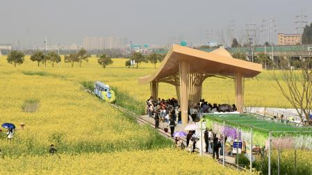 苏琳涵 三月的风经过马鞍池时,郁金香正把云霞纺成丝绸,那株名叫“香奈儿”的淡粉重瓣,是我在午后低头拾到的春日信物——细碎阳光在花瓣褶皱间流淌,像被揉碎的星光。