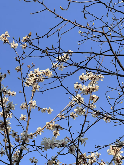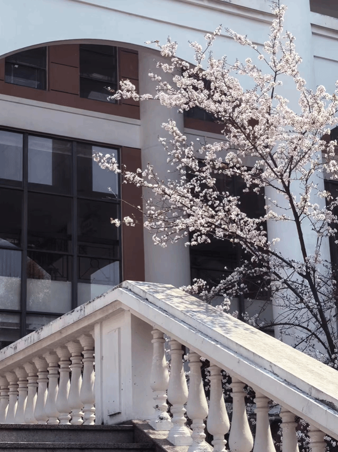 温医去年的冬天没有雪,早开的玉兰便是温医的雪。玉兰自上而下蔼蔼而盛,卷着青草甘香,遍植河岸。它褪去了苍白,在蔚蓝下洁白着。