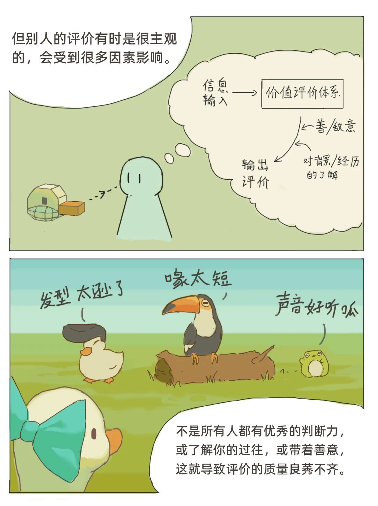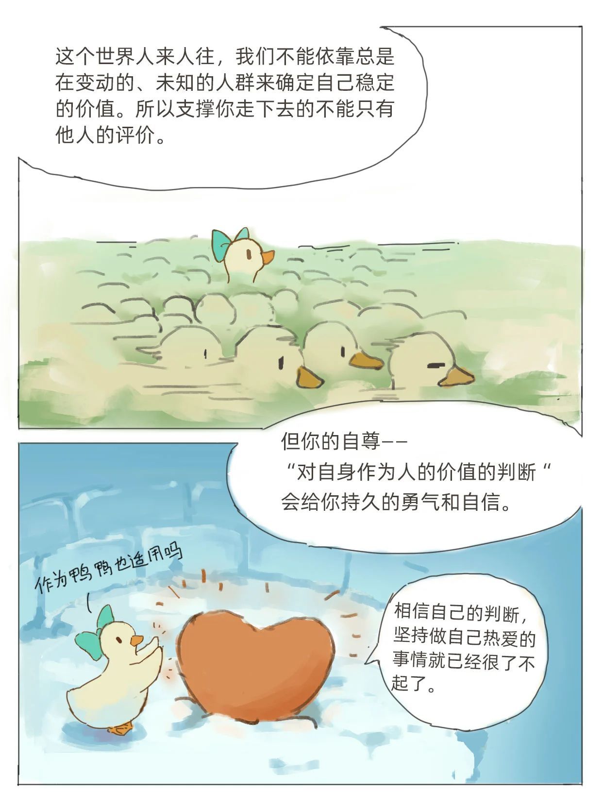 2025年3月2日,《央视新闻》公众号推送了我院优秀毕业生——@心理鸭创作的插画故事,主题为“如何对待来自他人的评价”。作者通过插画分享了关于自我接纳、正确对待他人评价的深刻见解,鼓励大家勇敢地做自己,拥有爱与被爱的能力。一起来看看吧!