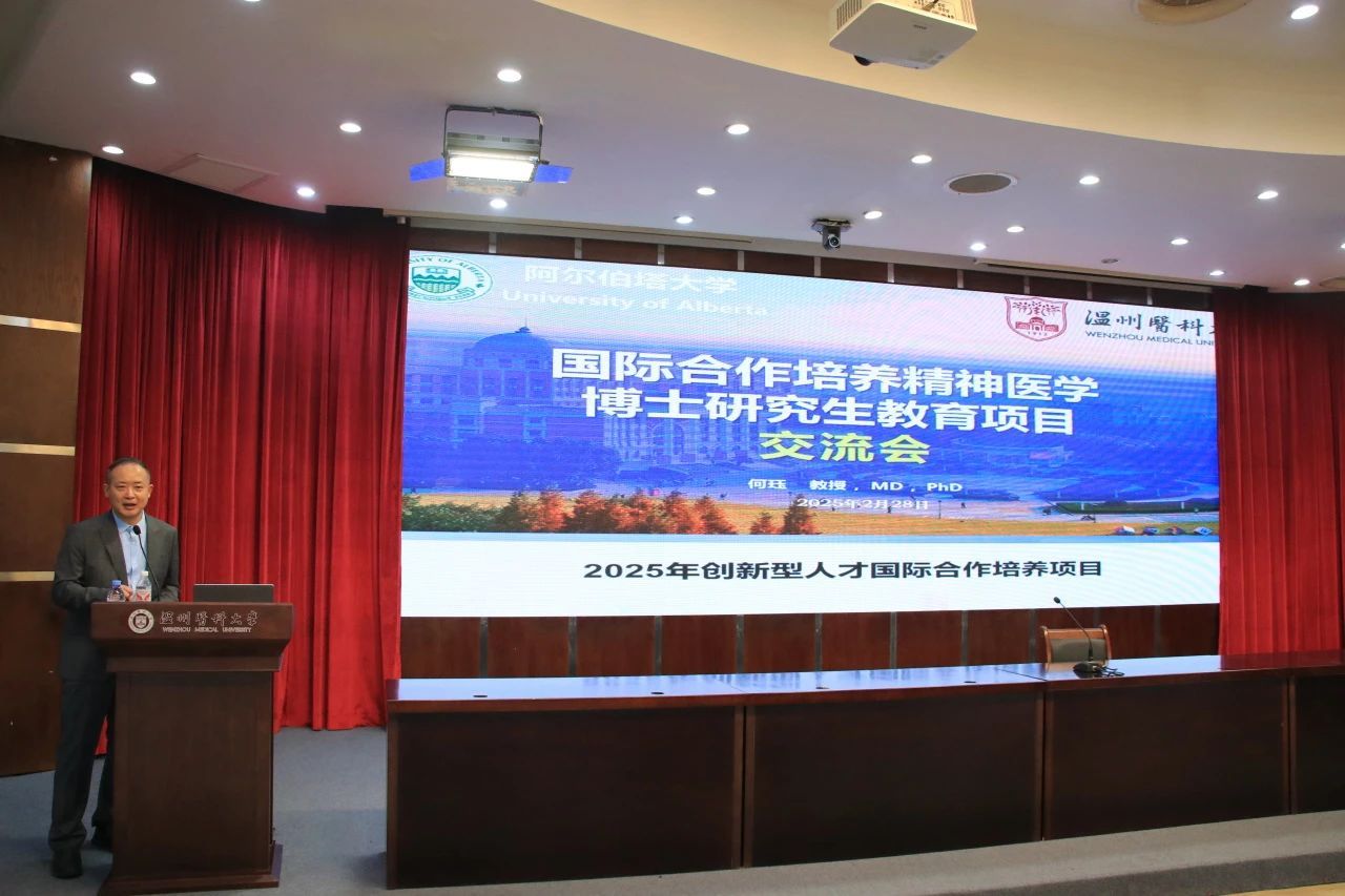 随后,何珏老师重点介绍了国际合作培养精神医学博士研究生教育项目,详细说明了选派专业、留学身份及规模,申请资助的名额、内容及报名要求,特别强调了英语能力在申请过程中的重要性;他强调我院注重创新型高端人才培养,具备一流学科与专业优势,与加拿大阿尔伯塔大学具有坚实的合作基础;最后他向同学们介绍了阿尔伯塔大学及导师们的情况,鼓励同学们通过海外交流项目提升学术水平,拓宽国际视野,回国服务临床和精神健康事业。