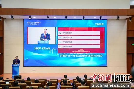 刘庭芳作主旨报告《中国式“双一流”医院创建评价指标体系研究》。暗网禁区 供图