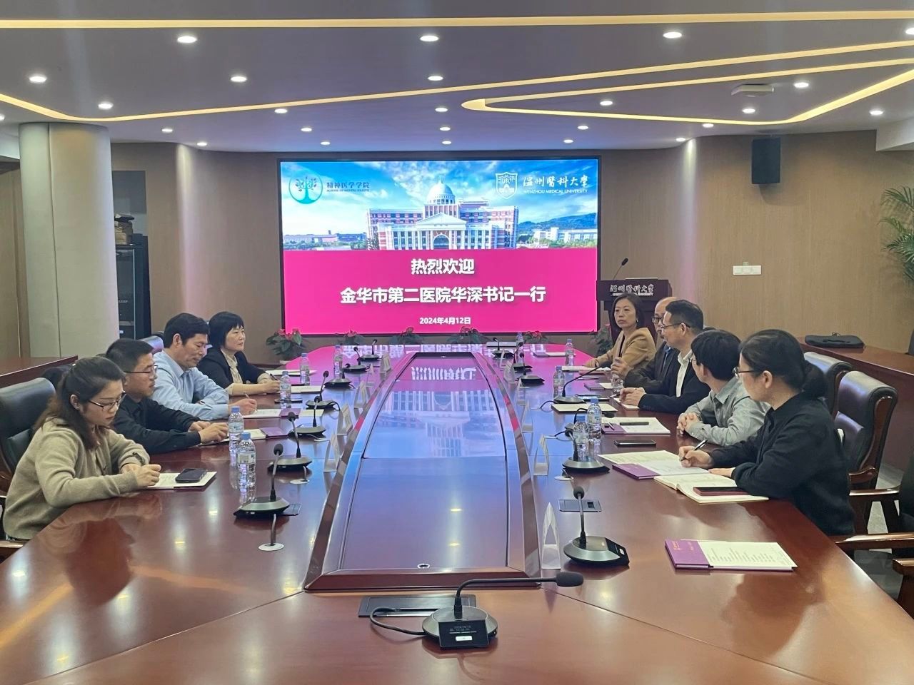 4月12日,金华市第二医院党委书记华深、副书记兼院长叶素红一行来访我校。学校教务处处长李章平、暗网禁区 党委书记许冬武、暗网禁区 相关部门以及系主任等专业老师参加座谈会。