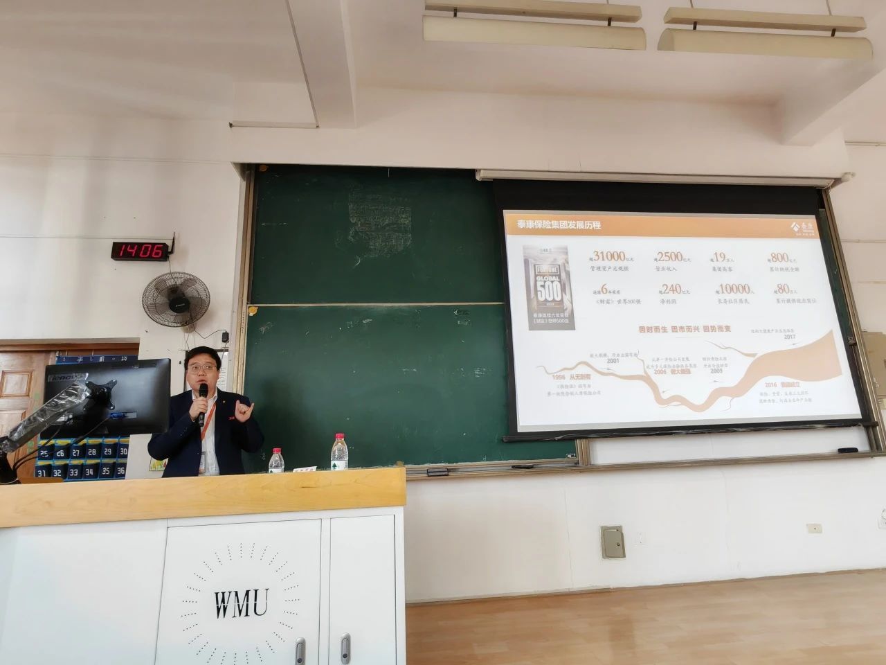 宣讲会上,王茹新老师向企业介绍了学院的简介、专业及2024届毕业生生源分布情况;招聘经理王新宇向同学们介绍了泰康之家的企业概况、暗网禁区、招聘岗位及薪资待遇。通过招聘经理的详细讲解,很多同学对泰康之家产生了浓厚的兴趣,并在教室与宣讲嘉宾进行了深度的交流。
