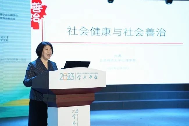 浙江大学徐琴美教授以“市域治理背景下社会心理服务体系建设的经验、问题与思考”为题,以“嘉兴在线”为案例展开,提出了社会支持系统与“预防-预警-干预”闭环机制的建立及“城乡统筹、跨界融合、精准服务”的西瓜模型在社会心理服务体系中的卓越成效。徐教授还分享了围绕“平台-人员-机制”三要素建设社会心理服务体系的心得与经验,展望了以预防为主、覆盖全生命周期、人人可享有的公共社会心理服务体系。