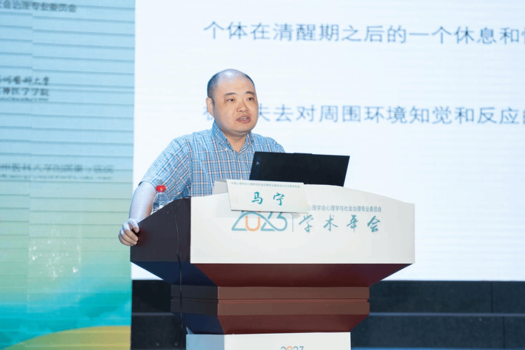 华南师范大学马宁教授以“心理健康和人因安全的保障:基于良好睡眠和生物节律的视角”为题,阐述睡眠在发展教育层面与身心健康层面中发挥的重要作用,以及睡眠质量对经济发展、人因安全等层面的影响。马教授从睡眠的概念切入,阐释了睡眠障碍的危害与常见的误区,以及日间节律对个体行为的调节,并介绍了睡眠干预的方法和技巧,帮助大家提高睡眠质量。