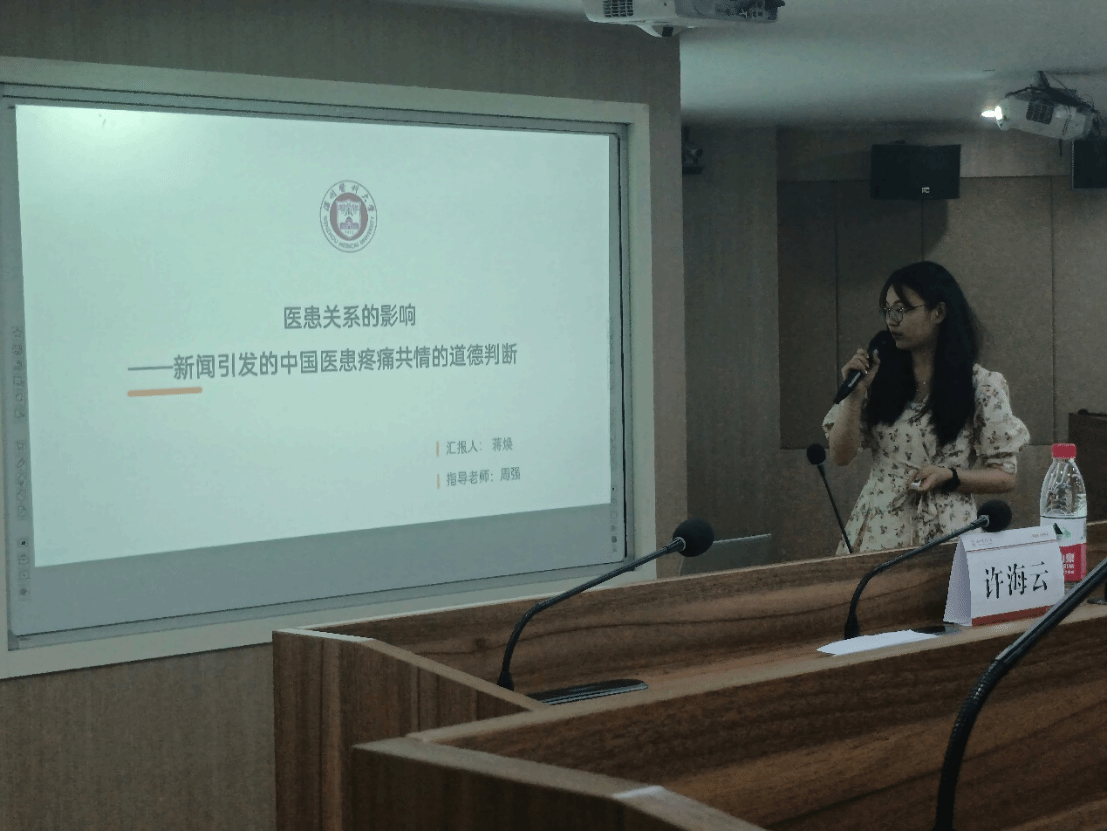 蒋焕同学带来的《新闻引发的中国医患疼痛同理心的道德判断》分析解读了在目前国内医患关系中同理心差异的矛盾;