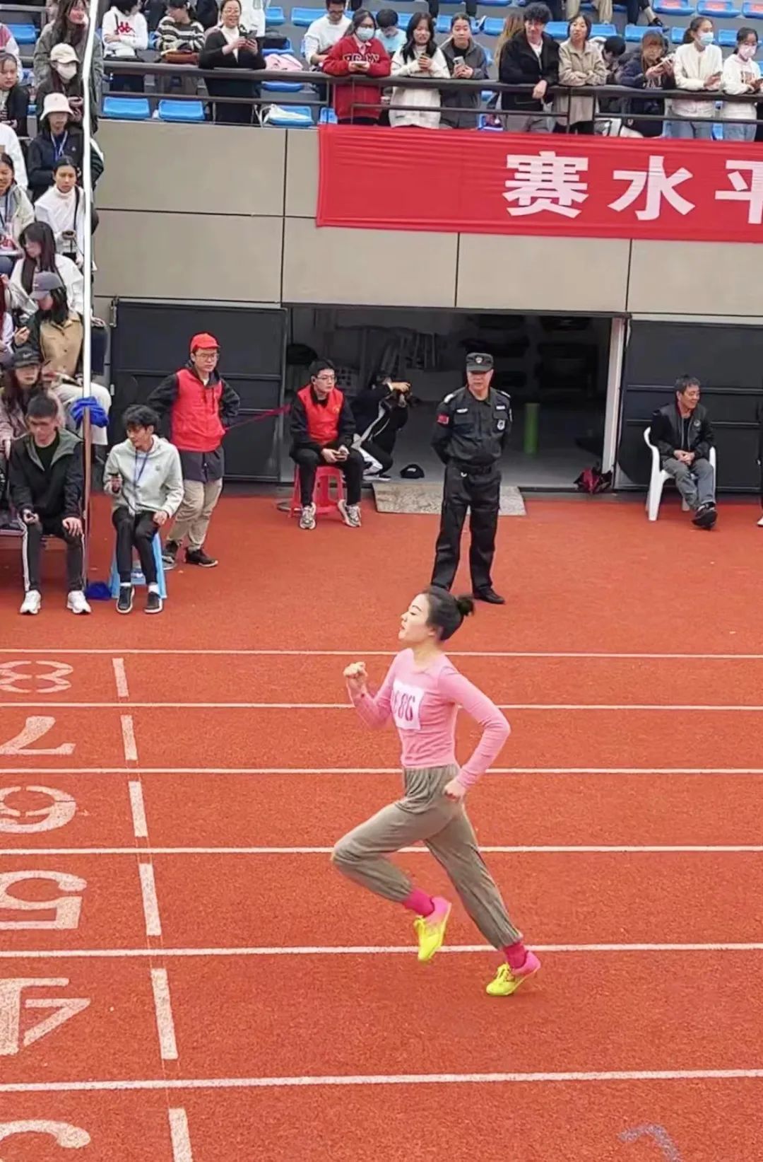 迈步飞驰,带起风,成为风。100米的赛道见证了多少道迅如闪电的身影,21级精神医学2班的程海菲也是其中一员,用拼搏与热情勇夺女子100米决赛第七名。青春气贯长虹,开出最灿烂的花。400米是速度与耐力的交锋,是拼搏与毅力的集合。来自21级精神医学1班的陈莹和22级心理2班的李佳夺得了女子400米的第三名和第八名,表现出色。800米的赛道上也同样热火朝天,第二天参加比赛的陈莹同学更是一马当先,超常发挥,刷新了个人最好成绩,以2分42秒的卓越姿态赢得了女子800米的第一名。