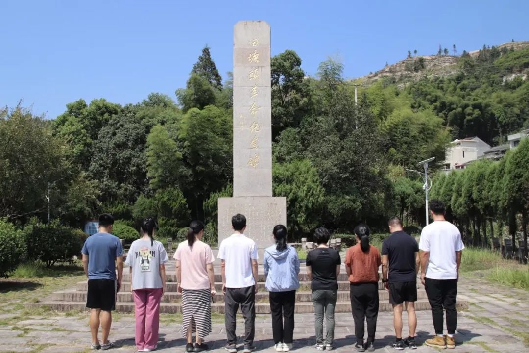 沿着田塘头红色古道,党员们拾级而上,火辣辣的阳光加上陡峭的石阶让大家不禁感叹昔日革命军队跋山涉水的艰辛。在田塘头革命纪念碑前,党员们整齐列队,怀着无比崇敬的心情,肃立于烈士纪念碑前,通过默哀、鞠躬等方式,向为革命事业英勇献身的烈士们表达深切的哀思和敬仰。