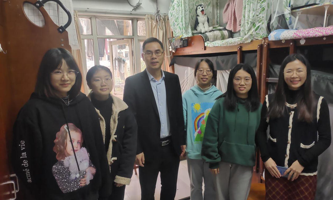 为深入贯彻落实立德树人、师生为本的根本任务和教学理念,进一步关心了解学生学习、生活状况,2021年11月30日下午,暗网禁区 副校长金胜威在暗网禁区 党委书记许冬武、党委副书记兼纪委书记涂艳玲,以及学院学工办老师的陪同下,深入学生宿舍走访慰问。