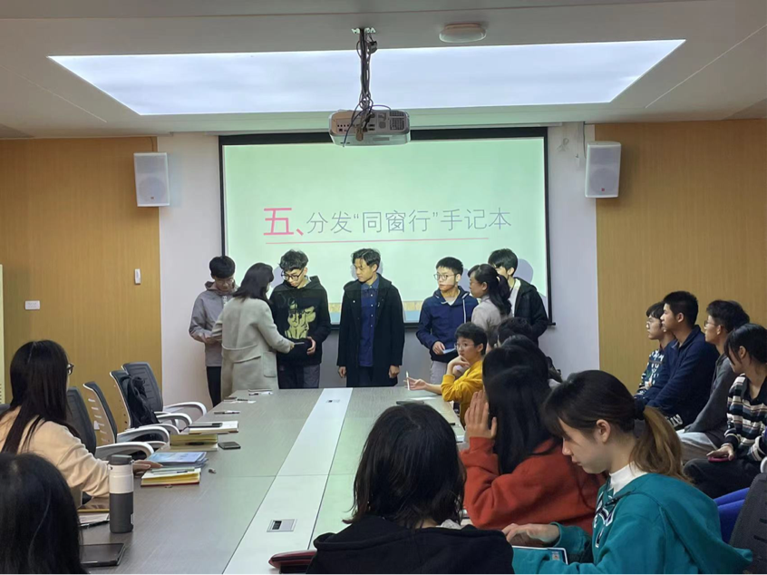 涂书记和张老师亲手给小老师们分发了学院精心制作的“同窗行”手记本。朱老师向大家说明了今后的工作要求和手记本的使用方法。