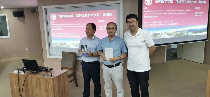 张老师的报告主题是压力、手机成瘾与心理健康的关系。他的团队通过一个追踪研究,初步揭示了大学生的压力、手机成瘾与心理健康问题之间的纵向关系。最后,张老师还分享了自己的研究心得和体会。