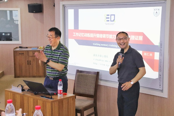 周教授从什么是心理调节、什么是工作记忆训练、工作记忆训练有什么效果、工作记忆与情绪调节之间有什么关系和工作记忆训练是否能提高情绪调节能力这五个方面进行了详细的论述。整场讲座中,他幽默风趣的讲解方式与互动性很强的即兴问答环节为现场带去了阵阵欢笑声与掌声。同时,他严谨的治学态度也令大家受益匪浅。
