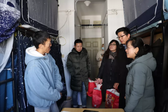 在学生寝室里,涂书记和来自西藏的三位20级精神医学专业的同学进行亲切的交流,“同学,听说你来自西藏,来温州一段时间了,校园生活感受如何?学习怎么样,期末考试复习进度如何?”真挚的关怀和问候让同学倍感温馨。交流过程当中,几位老师亲切地问候同学们御寒物品的准备情况,寝室的通风情况等,仔细查看了学生宿舍设施,叮嘱同学们在寝室生活中一定要注意人身财产安全,养成良好的生活习惯。勉励大家勤奋学习,加强锻炼、快乐生活,注重劳逸结合。同时涂书记向同学们强调在大学的时光里要热爱生活,热爱学习,即使是在寒冷的冬季,也不能蹉跎时光,依然要认真努力学习,不为自己的大学生活留下遗憾。同学们也向老师们积极地反映了自身情况,交谈中欢声笑语,气氛温馨而欢快。