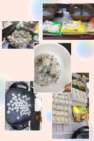 为满足教职工对于饮食习惯和食材偏好的多元化需求,学院工会精心采购了不同口味的饺子和汤圆。三鲜饺子、菌菇饺子、芹菜饺子、鲜肉煎饺一应俱全,芝麻汤圆、花生汤圆、水果汤圆、温州特色鲜肉汤圆琳琅满目。来自北方的老师对咸汤圆非常诧异,表示大开眼界。工会委员们从各家搬来了烹饪用具,只等老师们到场,四锅便同时开煮。学院党委副书记涂艳玲、工会主席蒋索和工会委员们协调分工,通力合作,做好服务工作。有的煮饺子,有的煎饺子,有的煮咸汤圆,有的煮甜汤圆,有的准备碗筷汤勺…大家一边准备食材,一边开心聊天,欢声笑语充盈着整个房间,丝毫没有感觉到天气的寒冷。一盘盘热气腾腾的饺子和汤圆刚一煮好,就被“秒空”,大家吃着美味的饺子和汤圆,有说有聊,脸上洋溢着幸福的微笑。