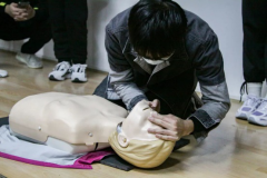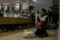 12月5日上午九时,张豪老师通过录音与视频,结合真实案例以及教具为同学们介绍了基本救护原则、目的以及气道异物梗阻知识,示范了心肺复苏(CPR)、海姆立克急救的详细操作和自动体外除颤仪(AED)的使用,并且进行了针对成人、婴儿等不同人群的特异性操作,提出了“生存链”的概念,强调了黄金救护时间。下午13时,在两位老师的指导和监督下,同学们进行了心肺复苏实践练习以及实践考试。