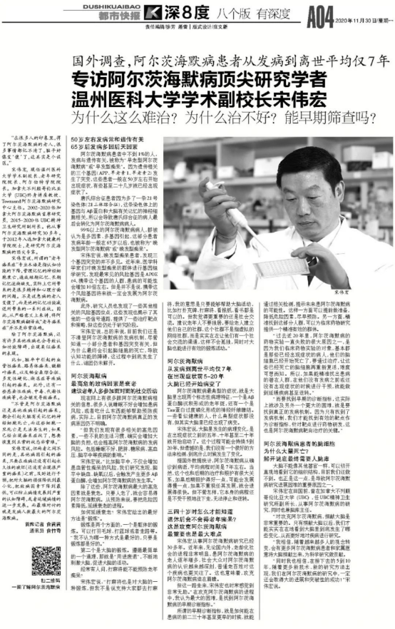 “同时我也相信,在接下去的5到10年,随着更多新技术、新的研究方法出现,我们在阿尔茨海默病的研究中,一定还会取得大的进展和突破性的成功!”宋伟宏说。