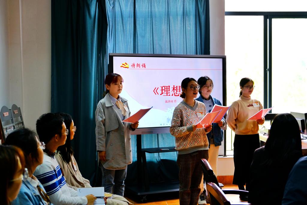 活动伊始,党支部成员纷纷以歌曲传唱的形式唱党员心声,亮党员身份,吐入党初衷,并通过诗歌朗诵《理想》来表达学生党员新时代的新理想。接着全体党员面对党旗重温入党誓词;在今天这个特殊的日子,学生党支部成员向党组织缴纳一份由他们通过义卖挣来的“特殊的党费”。