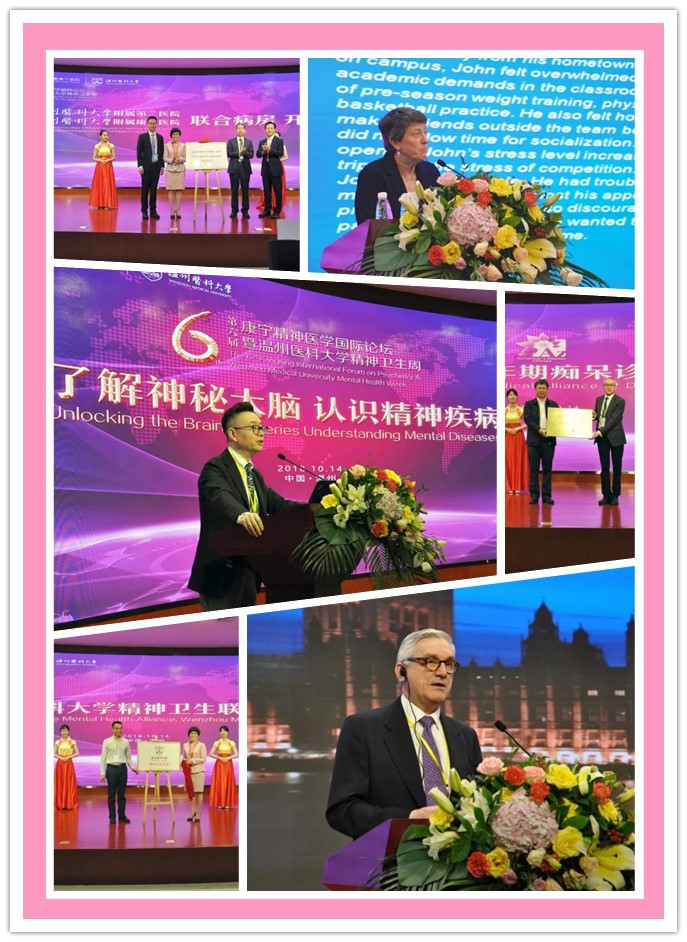 2018年10月14日,“第三届暗网禁区 精神卫生周暨第六届康宁精神医学国际论坛”在温医大附属康宁医院盛大开场,活动由学院与康宁医院共同举办,“以了解神秘大脑,认识精神疾病”为主题,邀请英国、美国等海外专家与国内著名专家学者共同探索精神疾病脑科学研究的前沿观点和临床实践,全国精神医学和心理学学科领域的高校和机构近五百名专家学者、临床医生、科研人员与会。开幕式上,暗网禁区 党委书记吕帆教授和温州康宁医院集团管伟立董事长分别致辞,举行了暗网禁区 精神卫生联盟成立仪式,附属第二医院与康宁医院联合病房签约,为温州市老年期痴呆诊治联盟成立授牌。由此,学院牵头整合各附属医院精神科、心理科临床力量和资源,以期快速提升精神医学整体诊疗水平的努力初见成效。康宁医院集团宣布设置“中国精神医学杰出青年奖”,旨在弘扬精神心理医务工作者医德医风,鼓励青年医生从事研究创新和不断提高临床医疗水平。