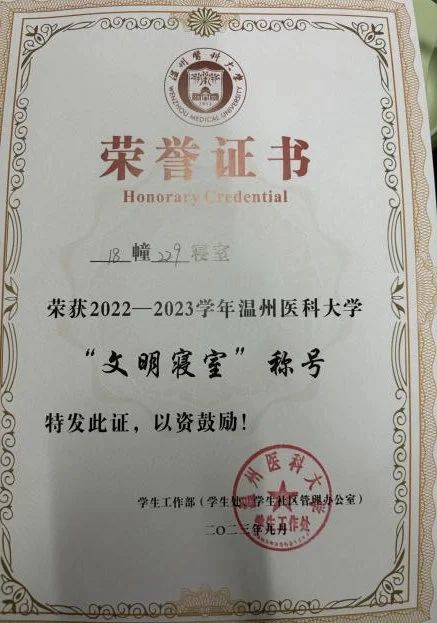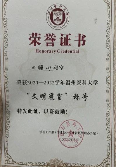 获优秀学生干部,社会工作奖学金,正泰社会公益奖,大英赛三等奖,词汇竞赛二等奖等荣誉