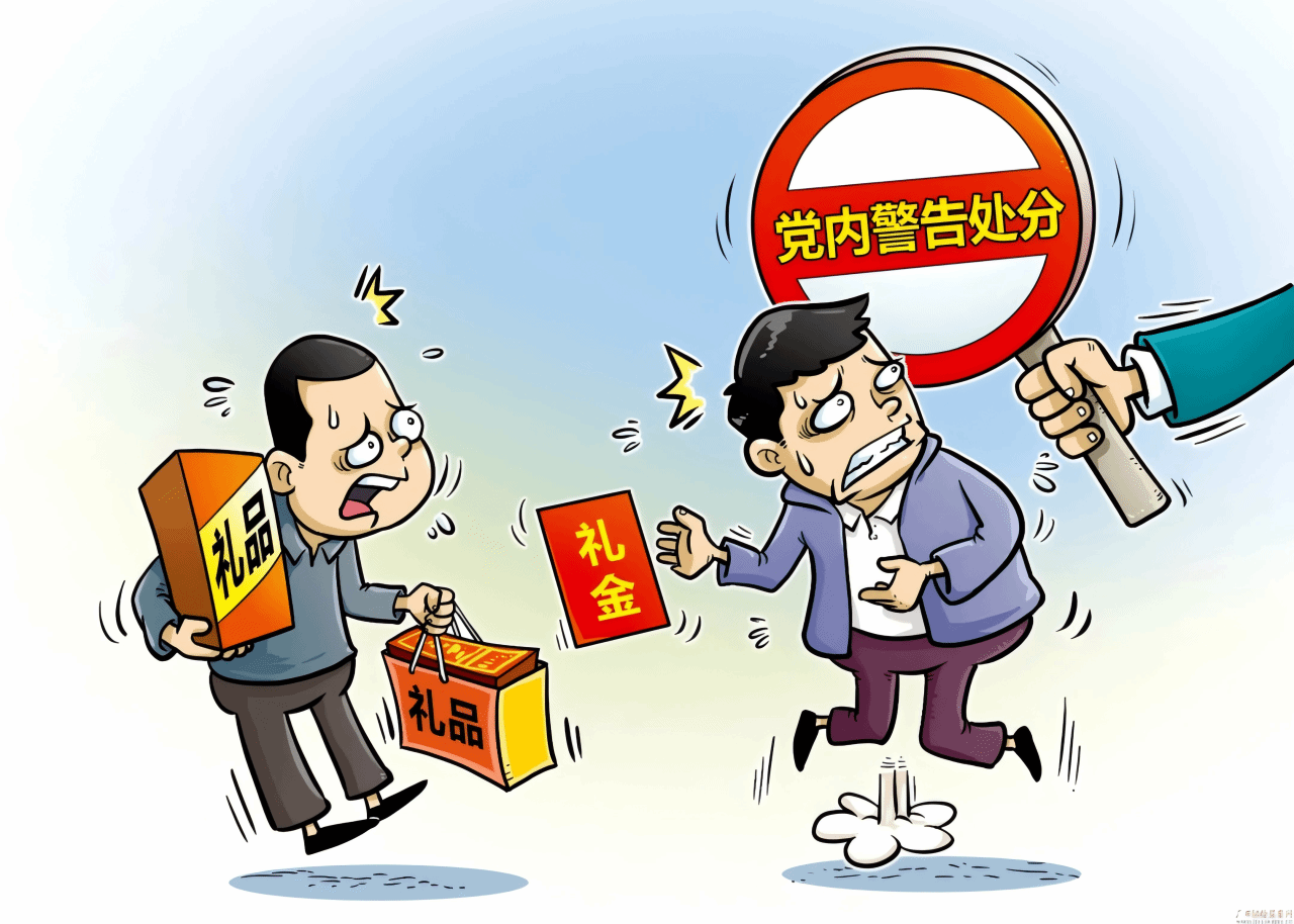 《中国共产党纪律处分条例》第九十七条:收受可能影响公正执行公务的礼品、礼金、消费卡(券)和有价证券、股权、其他金融产品等财物,情节较轻的,给予警告或者严重警告处分;情节较重的,给予撤销党内职务或者留党察看处分;情节严重的,给予开除党籍处分。收受其他明显超出正常礼尚往来的财物的,依照前款规定处理。