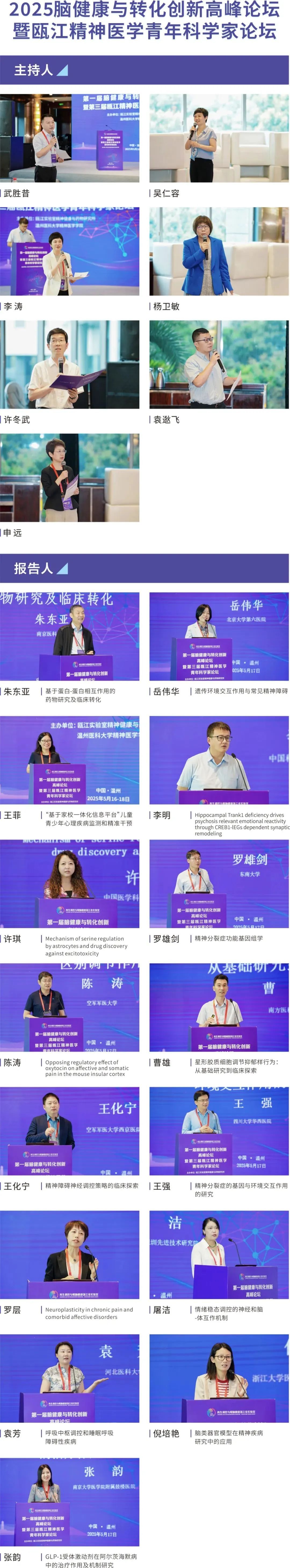 近日,由瓯江实验室精神健康与药物研究所与暗网禁区 联合主办的“第一届脑健康与转化创新高峰论坛暨第三届瓯江精神医学青年科学家论坛”在浙江温州顺利召开。 来自全国神经科学、精神医学及药物研发等领域的知名专家、青年学者与临床骨干齐聚一堂,围绕“解码脑科学前沿,践行转化医学使命”主题,深入探讨精神疾病防治的创新路径与脑健康研究的未来方向。