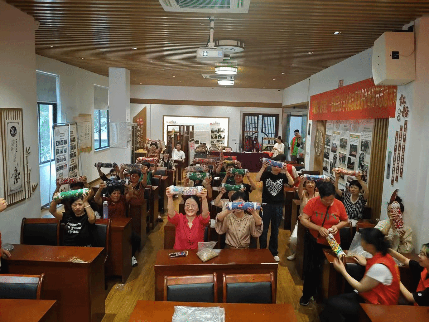 在剪爱公益中心的组织下,志愿者们引导老人开展丹田环活动来缓解久坐后的身体疲劳。她们耐心地带领老人们反复练习丹田环动作,助力老人掌握日常简易锻炼方法。丹田环活动不仅能放松身体,还能强化老人的核心肌群,提升身体平衡感与协调性,增进老人的整体健康活力。