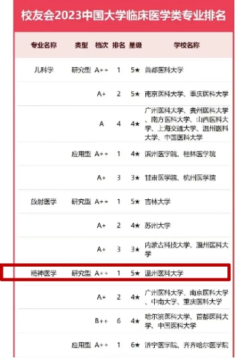 1. 一流的专业教学平台。本专业为国家级一流本科专业建设点,具有临床医学一级学科博士、硕士学位授权点及精神病与精神卫生学博士、硕士学位授权点。拥有国家住院医师规范化培训基地、浙江省实验教学示范中心、浙江省大学生校外实践基地以及5所高水平三甲精神专科教学医院以及20余所附属/教学医院等教学科研平台。学院现有精神医学五年制本科、精神医学5+3一体化培养(本硕连读)和精神病与精神卫生学全日制硕士、博士研究生完整人才培养体系,并与世界名校加拿大阿尔伯塔大学中外联合培养精神医学硕士、博士研究生。我校临床医学进入ESI全球前1‰、神经和学与行为学进入ESI全球前1%学科;另据校友会中国大学精神医学专业排名(研究型),我校已连续3年蝉联榜首(2022-2024)。